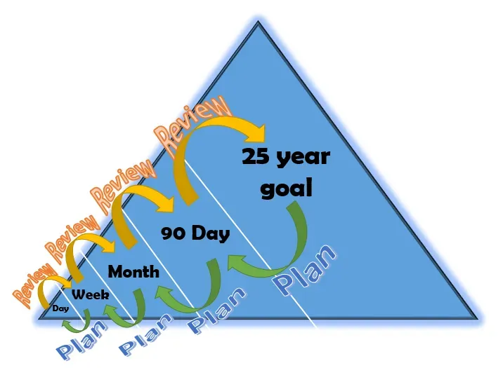 每个月,你会假设在接下来的 30 天内,你能做哪些 1-3 件关键的事情,来最有效地推进 90 天的目标。每周,你会假设你能做哪些 1-3 件关键的事情来推进月度目标。每天,你会假设你能做些什么来最大程度地推进周目标。