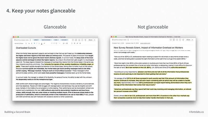 我们的目标是保持笔记的“可读性”,关键在于只需快速浏览,就能了解一个段落的要点。我们生活中最有用的信息来源都具有这种特性: