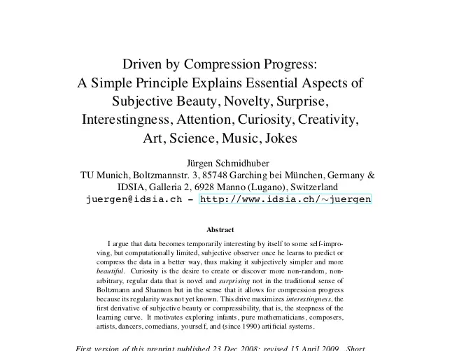 这篇论文将好奇心解释为“对发现或创造出更多新颖、令人惊奇的规律性数据的渴望……”换句话说,好奇心加快了信息压缩的过程,因为这些规律性尚未被发现。